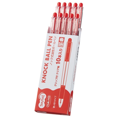 TANOSEE ノック式油性ボールペン グリップ付 0.7mm 赤 (軸色:クリア) 10本/袋(ご注文単位1袋)【直送品】
