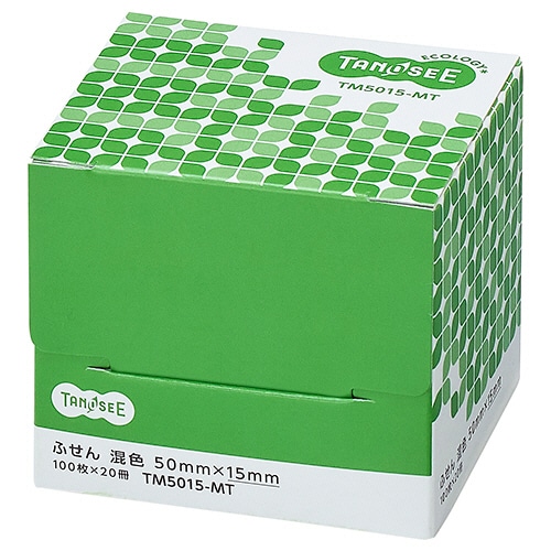 TANOSEE ふせん 50×15mm 4色混色 100冊/箱(ご注文単位1箱)【直送品】