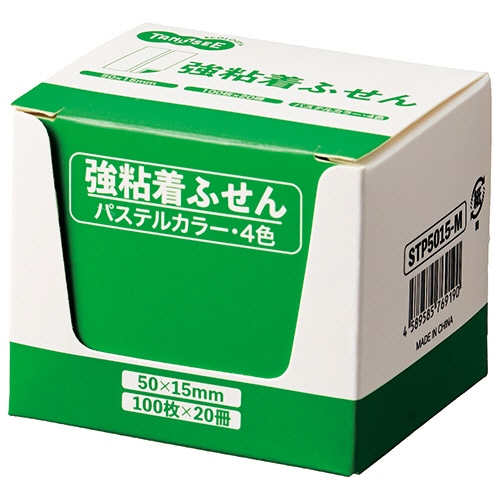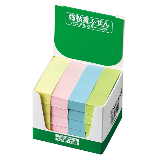 TANOSEE 強粘着ふせん 50×15mm パステルカラー・4色 20冊/袋(ご注文単位1袋)【直送品】