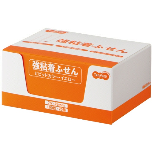 TANOSEE 強粘着ふせん 75×25mm ビビッドカラー・イエロー 60冊/箱(ご注文単位1箱)【直送品】