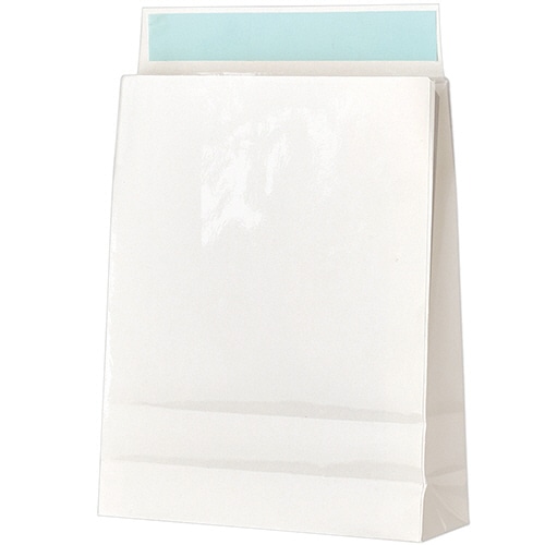 - ●水滴に強いPPフィルム加工タイプ。●仕様/封かんテープ付●ベロサイズ/約50mm●サイズ/小●寸法/約W260×D80×H320mm●色/白(PPフィルム加工)●坪量/100g/m2●1パック=100枚入