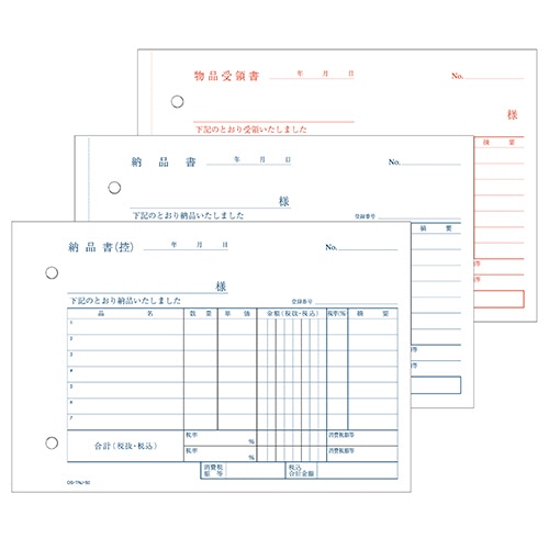 TANOSEE 納品書(受領付) B6ヨコ型 3枚複写 ノーカーボン 50組 1冊(ご注文単位1冊)【直送品】