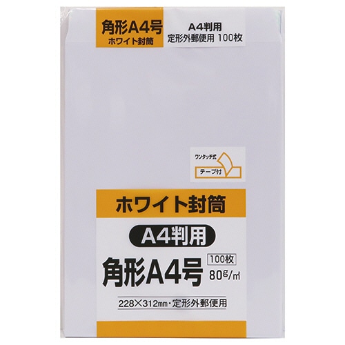 キングコーポレーション ホワイト封筒 角形A4 80g/㎡ 〒枠なし テープ付 KA4W80Q100 100枚/袋(ご注文単位1袋)【直送品】