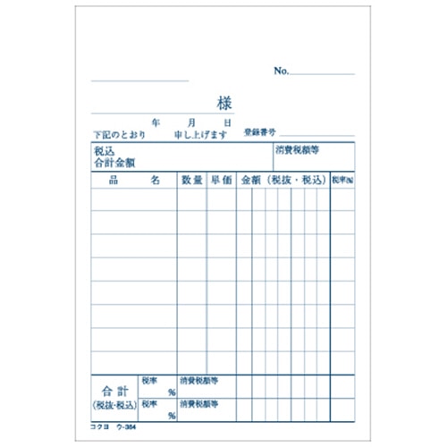 コクヨ NC複写簿(ノーカーボン)3枚仕切書 B7タテ型 8行 50組 ウ-364 10冊/セット(ご注文単位1セット)【直送品】
