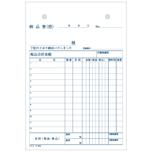 コクヨ NC複写簿(ノーカーボン)3枚納品書(請求付き) B6タテ型 12行 50組 ウ-332 1冊(ご注文単位1冊)【直送品】
