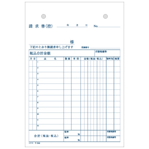 コクヨ NC複写簿(ノーカーボン)請求書 B6タテ型 2枚複写 12行 50組 ウ-322 10冊/セット(ご注文単位1セット)【直送品】