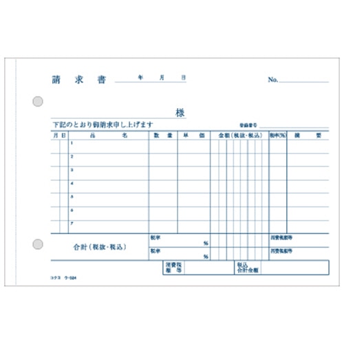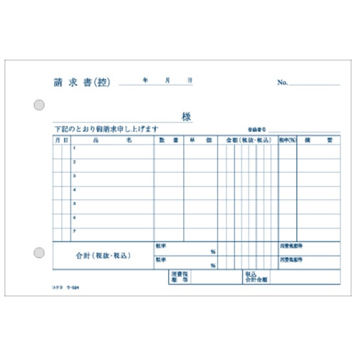 コクヨ NC複写簿(ノーカーボン)請求書 B6ヨコ型 2枚複写 7行 50組 ウ-324 1冊(ご注文単位1冊)【直送品】
