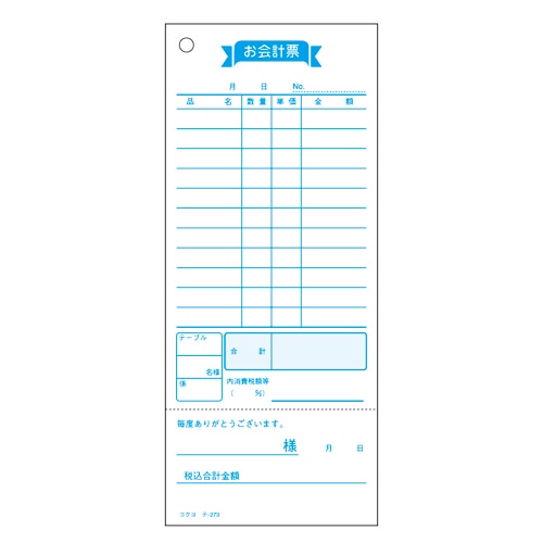コクヨ お会計票(勘定書付) 177×75mm 100枚 テ-273 1冊(ご注文単位1冊)【直送品】