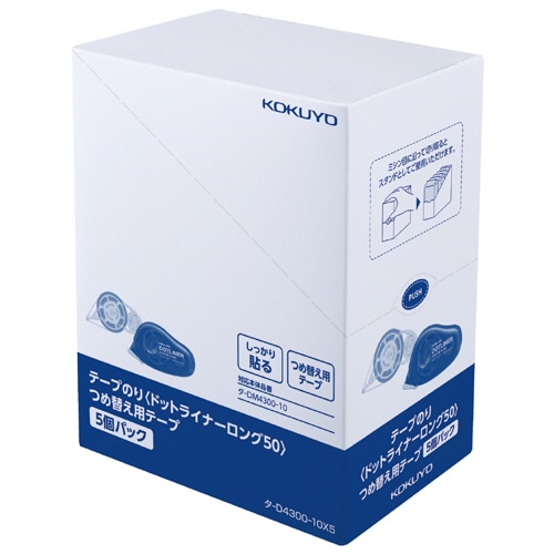 コクヨ テープのり ドットライナーロング50 しっかり貼るタイプ つめ替え用 10mm×50m タ-D4300-10X5 5個/袋(ご注文単位1袋)【直送品】