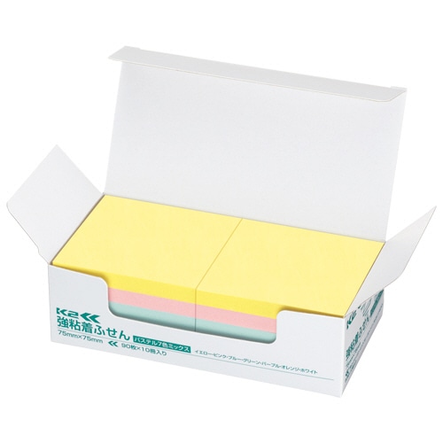 コクヨ 強粘着ふせん<K2> 75×75mm パステルカラー7色 K2メ-KP7575X10 10冊/袋(ご注文単位1袋)【直送品】