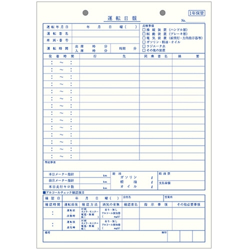 コクヨ 社内用紙 運転日報 B5 2穴 100枚 シン-270N 10冊/セット(ご注文単位1セット)【直送品】