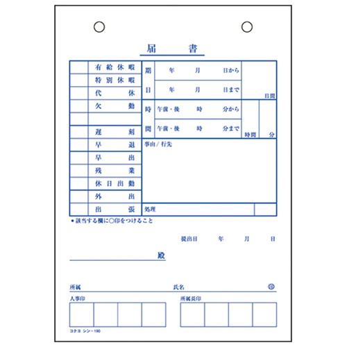 コクヨ 社内用紙 届書 B6 2穴 100枚 シン-190 10冊/セット(ご注文単位1セット)【直送品】