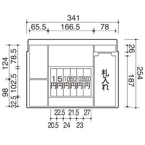 外寸:W318×D257×H128mm、内寸:W275×D198×H59mm