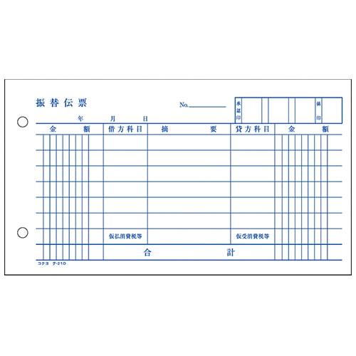 コクヨ 振替伝票(仮受け・仮払い消費税額表示入り) タテ106×ヨコ194mm 2枚複写 バックカーボン 50組 テ-210 10冊/セット(ご注文単位1セット)【直送品】