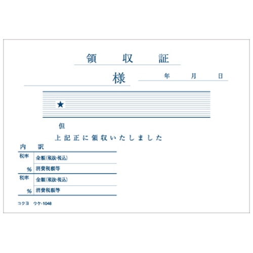 コクヨ 領収証 B7ヨコ型 100枚 ウケ-1048N 10冊/セット(ご注文単位1セット)【直送品】