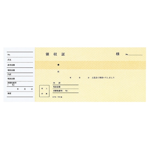 コクヨ 領収証 小切手判・ヨコ型 ヨコ書 二色刷り 50枚 ウケ-55 10冊/セット(ご注文単位1セット)【直送品】
