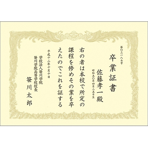 ササガワ タカ印 OA賞状用紙 クリーム A4 タテ書用 業務用パック 10-1167 100枚/箱(ご注文単位1箱)【直送品】