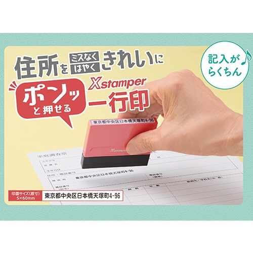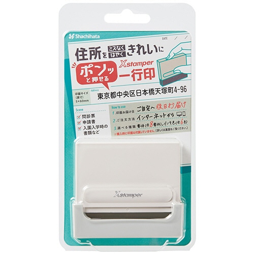 - ●書類への住所記入はこれ1つでOK!●書体/楷書体、行書体、隷書体、古印体、明朝体、角ゴシック体、丸ゴシック体、てん書体から選択●印面サイズ/5×60mm●文字数/最大35文字まで●インク色/黒、赤、藍色、緑、朱色、紫から選択●インク種類/顔料●本体色/アイボリー●寸法/W71.4×D12.8×H61.7mm●重量/30g●シリーズ名/Xスタンパー●補充インキ/XLR-20N●なつ印回数/約20000回(メーカー試験データによる)※本体のみのお届けです。本体が届いたらインターネットから印面をご注文ください。●商品をご購入後、インターネット(パソコン・スマートフォン・携帯電話)から印面をご注文いただけるメールオーダー式の一行印、本体色はアイボリーです。●用途:入園・入学時の書類など、問診票など、証明書申請など、変更届など、宿泊者名簿など、入所時の書類など。※お住まいの地域や施設によってはご使用いただけない場合がございます。