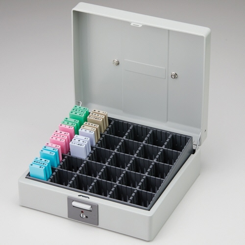 ●ダンゼン見やすい、取り出しやすい!●仕様/大型●外寸サイズ/W228×D214×H94mm●材質/スチール●仕切調節可能●鍵2個付●フタが開くと同時に内ケース後部が、せり上がるスチール製印箱。大型です。●蓋はワンタッチオープン式で、ロックの開閉状態がひと目でわかる表示窓付き。●仕切りの調節も可能です。