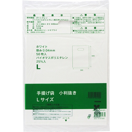 スマートサプライ HD手提げ袋 小判抜き(ホワイト) L KBLHW-B25 50枚/袋(ご注文単位1袋)【直送品】