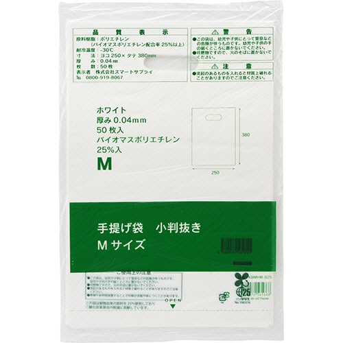 スマートサプライ HD手提げ袋 小判抜き(ホワイト) M KBMHW-B25 50枚/袋(ご注文単位1袋)【直送品】