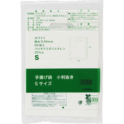 スマートサプライ HD手提げ袋 小判抜き(ホワイト) S KBSHW-B25 50枚/袋(ご注文単位1袋)【直送品】