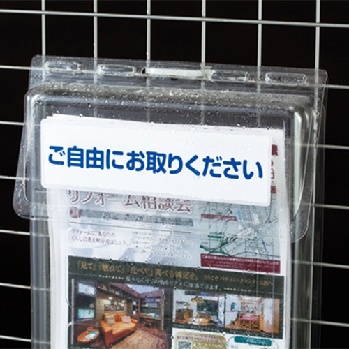 - ●屋外で使える、簡易カタログスタンド。●サイズ/A4●内寸/W225×H300mm●材質/本体:PET(生地厚0.5mm) ●付属品/ラベル、結束バンド●A4仕様のカタログポスト。●フタ付だから雨風に強い。