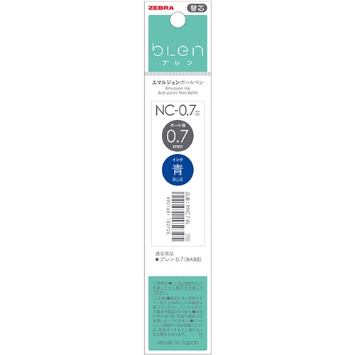 ゼブラ 油性ボールペン替芯 NC-0.7芯 青 RNC7-BL 10本/セット(ご注文単位1セット)【直送品】