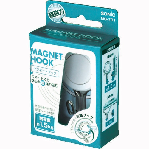 ソニック 超強力マグネットフック 小 耐荷重約1.5kg 白 MG-731-W 1個(ご注文単位1個)【直送品】