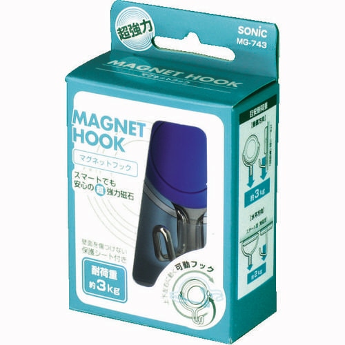 ソニック 超強力マグネットフック 中 耐荷重約3kg 青 MG-743-B 1個(ご注文単位1個)【直送品】