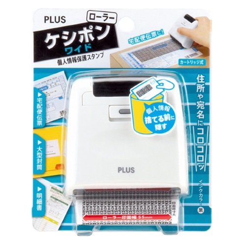プラス 個人情報保護スタンプ ローラーケシポン ワイド 本体 ホワイト IS-510CM 1個(ご注文単位1個)【直送品】