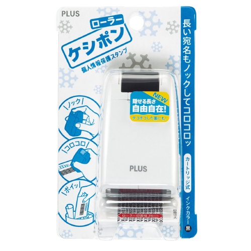 プラス 個人情報保護スタンプ ローラーケシポン 本体 ホワイト IS-500CM-B 1個(ご注文単位1個)【直送品】