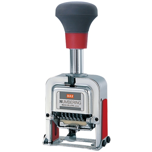 - ●大きな柔らかグリップで衝撃吸収!●仕様/6桁7様式●サイズ/W64×D43×H144mm●重量/460g●インク色/黒(油性顔料)●対応変換目盛/0.1.2.3.4.6.12.連続●6桁7様式の手にやさしいナンバリングです。●手にフィットするハンドル形状。●衝撃吸収ハンドルが手への衝撃を削減!軟質エラストマー材を採用。手への痛みや負担を軽減します。●超微粒子顔料インク。ボタ付きが出にくく、鮮明な印影を実現しました。