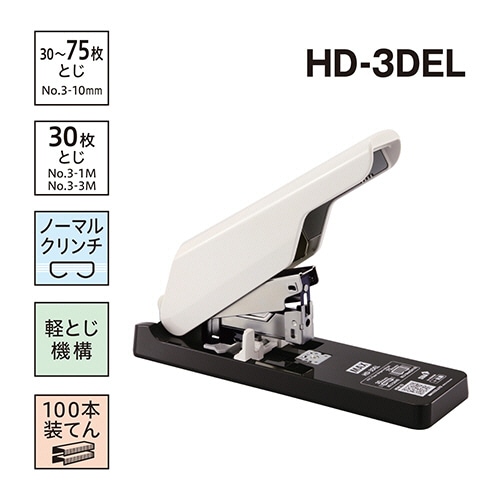 マックス 軽とじ中型ホッチキス 75枚とじ ホワイト HD-3DEL 1台(ご注文単位1台)【直送品】