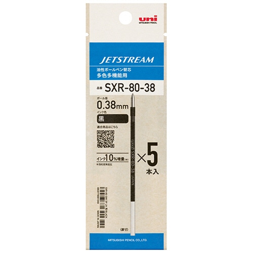 三菱鉛筆 油性ボールペン替芯 紙製パッケージ 0.38mm 黒 ジェットストリーム多色・多機能用 SXR8038K5P.24 5本/袋(ご注文単位1袋)【直送品】