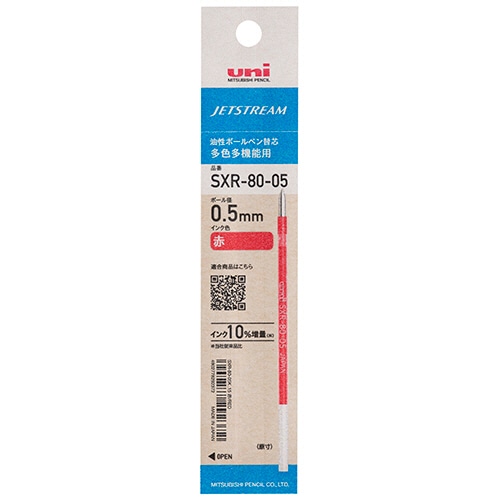 三菱鉛筆 油性ボールペン替芯 紙製パッケージ 0.5mm 赤 ジェットストリーム多色・多機能用 SXR8005K.15 10本/セット(ご注文単位1セット)【直送品】