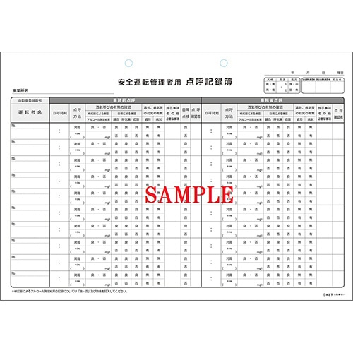 日本法令 運転者アルコールチェック点呼記録簿 A4 50枚 自動車61-1 1冊(ご注文単位1冊)【直送品】