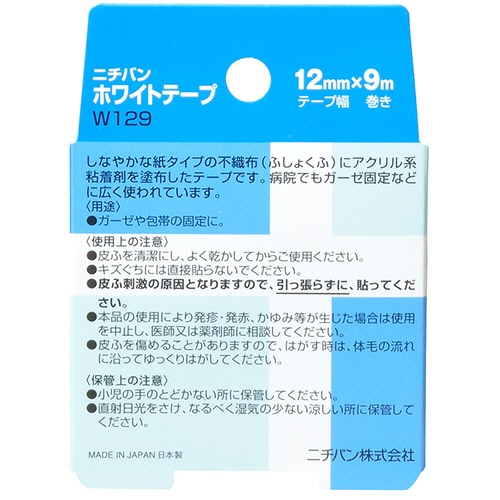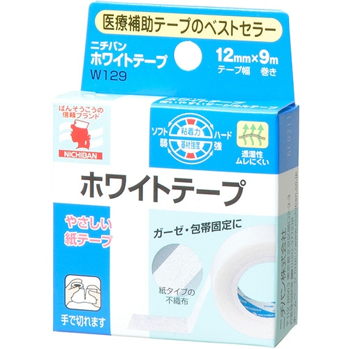 ニチバン ホワイトテープ 12mm×9m W129 1巻(ご注文単位1巻)【直送品】