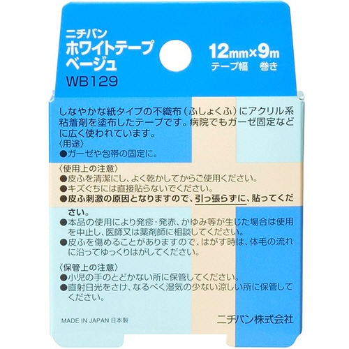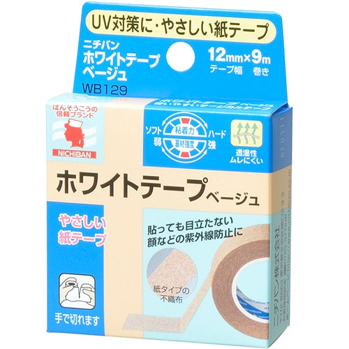 ニチバン ホワイトテープ ベージュ 12mm×9m WB129 1巻(ご注文単位1巻)【直送品】