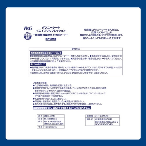 P&G ダウニー シート エイプリルフレッシュ 34枚/袋(ご注文単位1袋)【直送品】