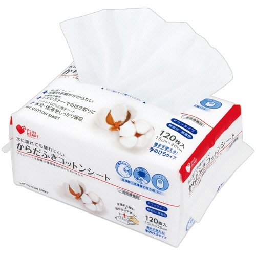 オオサキメディカル プラスハート 水に濡れても破れにくい からだふきコットンシート 120枚 12個/袋(ご注文単位1袋)【直送品】