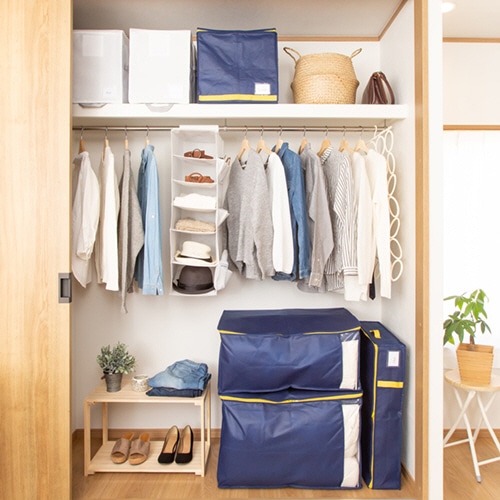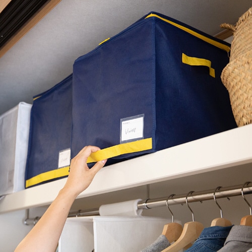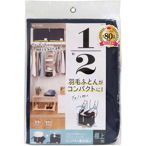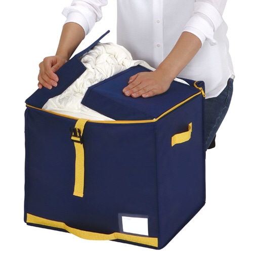 ●クローゼットスッキリ!かさばる羽毛布団をコンパクトに収納●仕様/棚上用●寸法/約W400×D350×H360mm●色/ネイビー●材質/本体:ポリプロピレン、芯板:紙●収納のめやす/シングル羽毛掛けふとん1枚●生産国/中国●芯板で押さえることで羽毛ふとんをコンパクトに収納できる収納袋です。クローゼットの棚上にも収納できるコンパクトサイズ。カラーはネイビーです。●ファスナーを閉める際、ふとんを噛みにくいフロント抑えパーツがついているので、スムーズに収納できます。●通気性に富むためカビがつきにくく、保管用に便利です。●収納物がわかるネームホルダーが前面に付いています。●クローゼットへの出し入れに便利な持ち手と引き手付きです。●防虫剤等が入れられるポケットが2ヵ所付いています。