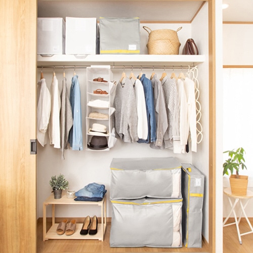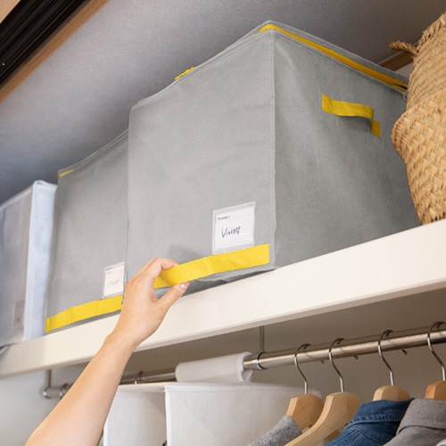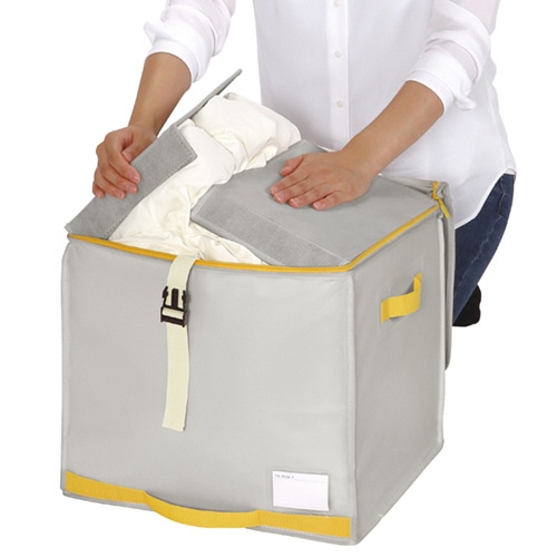 ●羽毛布団が約2分の1に!●仕様/棚上用●寸法/約W400×D350×H360mm●色/グレー●材質/本体:ポリプロピレン、芯板:紙●クローゼットにぴったりな棚上用の布団収納ケース。
