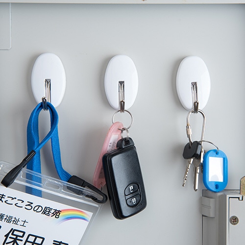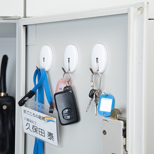 - ●介護・医療現場で重宝する、抗菌剤配合樹脂使用のフックシリーズ。●取り付けタイプ/マグネット●寸法/W31×D27×H53mm●材質/本体:ABS樹脂(抗菌剤入)、ヨーク:防錆処理鉄板、磁石:ネオジム磁石、すべり止め:合成ゴム系、フック:ステンレススチール●制限荷重/垂直面使用時:2kg、水平面使用時:1kg●1パック=6個●天面、棚裏などに付けて、吊り下げられます。