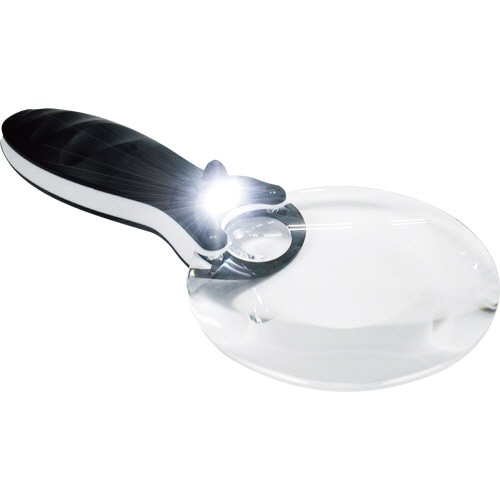 - ●フチなしなので視界を妨げず見やすい。●倍率/大3倍/小6倍●レンズ径/87.5mm●寸法/W87.5×D33×H208mm●材質/レンズ:アクリル樹脂製、本体:ABS樹脂製●重量/100g(電池を除く)●付属品/単3電池×2個●レンズにフチがないので、視界を妨げずに違和感なく文字も写真も細かな部分まで見ることができます。●LEDライト2灯内蔵で明るく大きく美しく見えるルーペです。