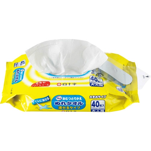 白十字 サルバ おむつとりかえぬれタオル 流せるタイプ 40枚 24個/袋(ご注文単位1袋)【直送品】