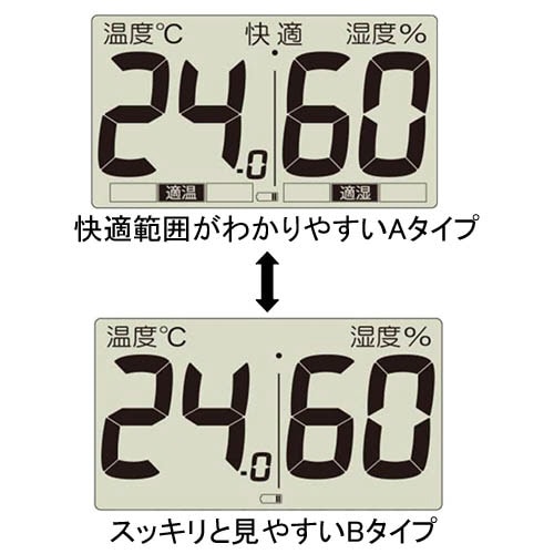 - ●超大画面で大きな数字がどこからでも見やすい。●測定項目/温度、湿度●設置方法/卓上、壁掛●測定温度範囲/-9.9~50℃●測定湿度範囲/20~95%●温度最小表示/-9.9℃●湿度最小表示/20%%BR>●動作温度範囲/-9.9~50℃●センサー/温度:サーミスタ、湿度:高分子抵抗●寸法/W235×D25×H165mm●重量/約408g●色/ホワイト●電源/単3乾電池×2●付属品/単3乾電池×2(お試し用)●日本製のセンサー搭載。●折りたたみスタンドの角度は3段階。壁掛け、卓上どちらでも使用可能。●背面のボタンで画面切替可能。(快適範囲がわかりやすいAタイプとスッキリと見やすいBタイプ)