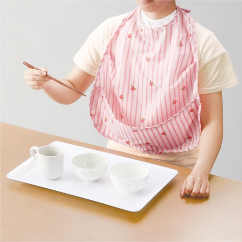 - ●ワイヤー入りのワイドポケットで食べこぼしを防ぐ!●寸法/幅47×長さ60cm●首回りサイズ/最大48cm●色/ベージュ●材質/ポリエステル100%(表面:耐久撥水加工、裏面:防水加工)●洗濯機/○(ネット使用)●脱水機/○●乾燥機/○(60℃)●アイロン/×●「ワイヤー入ワイドポケット付」のため、ポケットを広げたまま固定でき、食べこぼしをキャッチします。●「シングルサイドタック」がエプロンを内側から反らせ、食べこぼしの横モレを防ぎます。●首元にやさしくフィットする「やわらかネックフィッター」が伝いモレを防ぎ、快適な着け心地を実現します。●「大きめワンタッチテープ付」のため、首まわりのサイズ調整が簡単に行えます。(首まわり最大48cm)●耐久性に優れた表裏両面加工(表面:耐久撥水、裏面:防水)により、衣類への汚れの染み込みを防止します。