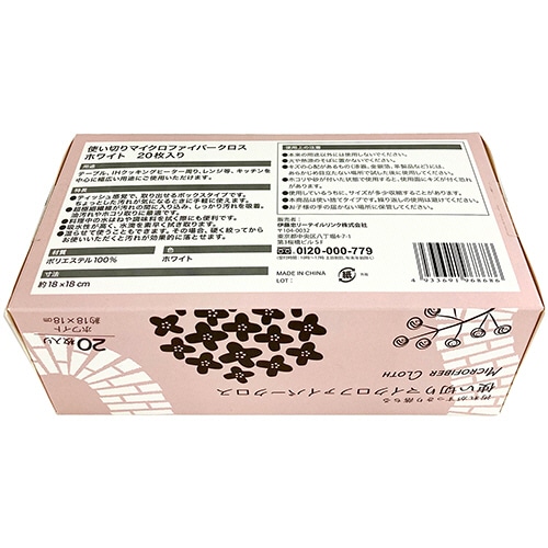 伊藤忠リーテイルリンク 使い切りマイクロファイバークロス 18×18cm ホワイト 20枚/袋(ご注文単位1袋)【直送品】