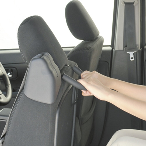 - ●しっかりつかんで安全昇降。乗車中につかんで安定を確保。●寸法/400×直径25mm●材質/ゴム、PP、ポリエステル●ヘッドレストのアームに通すだけ。マルチフック付。